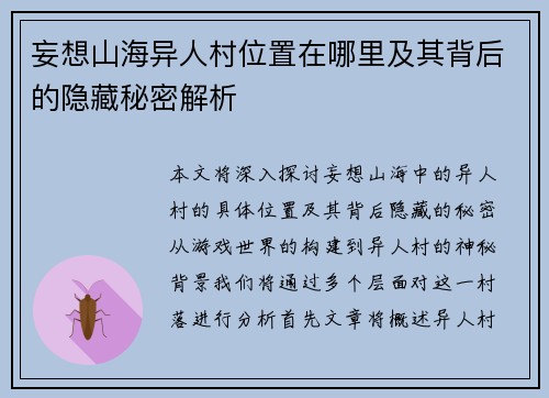 妄想山海异人村位置在哪里及其背后的隐藏秘密解析
